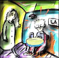 She hesitated and then sat down at my table.